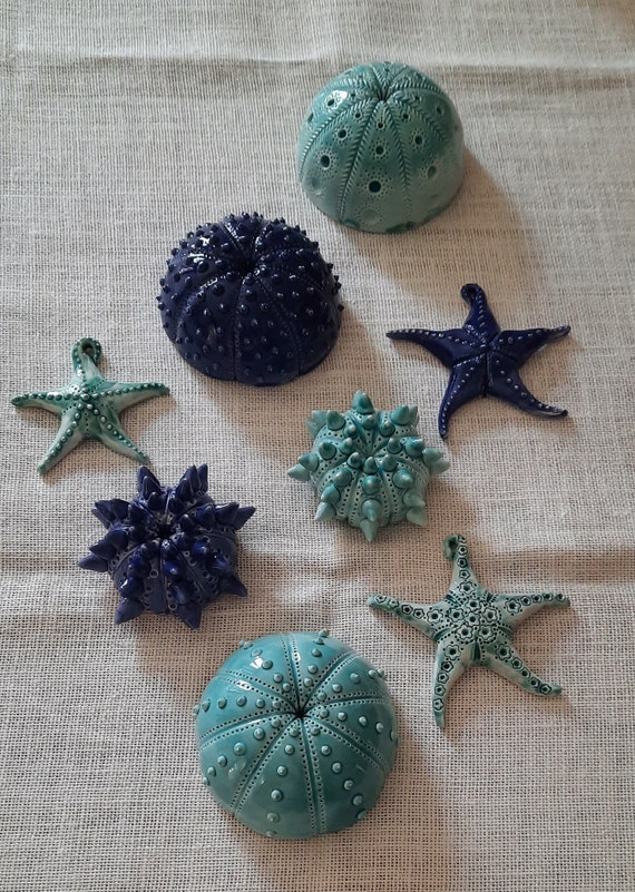 Sea Urchin Shell Green Blue Handmade Ceramic Wall Decoration Etsy